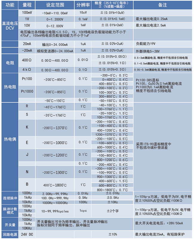 PLC等測量裝置的調校。代替電阻箱,電位差計,電流源、電壓源及脈沖信號源