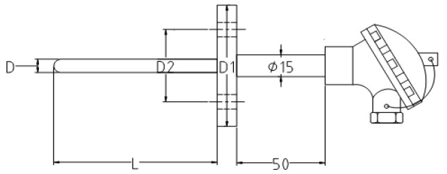 表示:Y9型熱電偶:K型,護(hù)管直徑6mm,長(zhǎng)度150mm,法蘭直徑:95mm 三線制 |