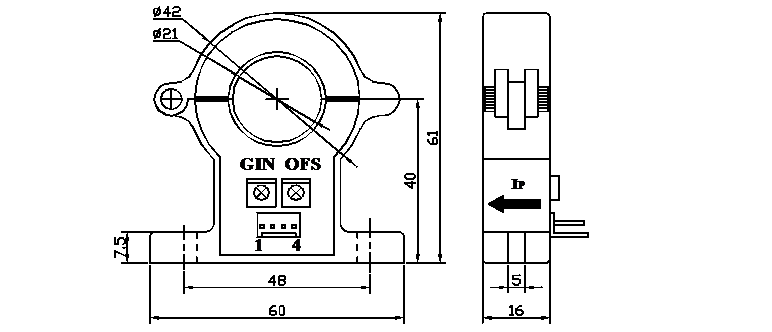 測(cè)量0-500A電流輸出4V信號(hào),孔徑21mm,電源±12~±15V