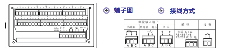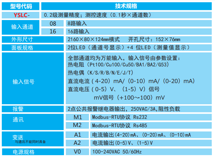 8路溫度巡檢儀:YSLC-16V0 16路溫度測量+報警功能 面板尺寸: 160×80×124 mm 橫式