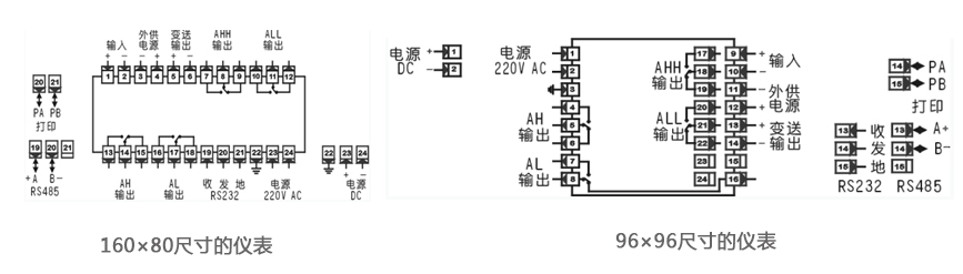 4、可選配1~4點(diǎn)報(bào)警輸出。包括測(cè)量值上限、測(cè)量值下限、偏差上限、偏差下限、偏差絕對(duì)值五種基本報(bào)警方式和與五種基本報(bào)警方式對(duì)應(yīng)的五
