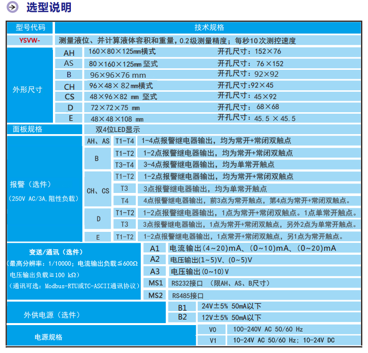 1、與各類液位傳感器配合,測量顯示液位的同時,按選定的容器類型,設置的容器結構尺寸及液體密度,計算、顯示液體容積和重量。